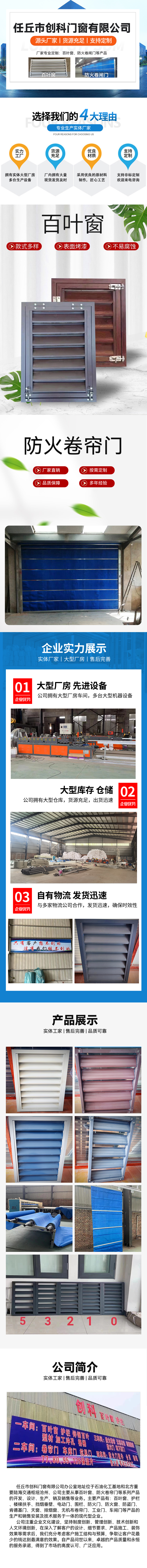 任丘創(chuàng)科門窗有限公司主要生產(chǎn):鋅鋼百葉窗,鋅鋼百葉窗廠家,鋅鋼百葉窗批發(fā),鋅鋼百葉窗哪家好,百葉窗型材,百葉窗型材廠家,百葉窗,百葉窗廠家,百葉窗價(jià)格,百葉窗批發(fā),百葉窗哪家好,百葉窗優(yōu)質(zhì)商家,空調(diào)百葉窗,空調(diào)百葉窗廠家,空調(diào)護(hù)欄,防火卷簾門,無(wú)基布卷簾門,擋煙垂壁,防火卷簾門,無(wú)基布卷簾門,擋煙垂壁,保溫卷簾門,抗風(fēng)卷簾門,百葉窗配件 防火門批發(fā) 防火門廠家直銷 。