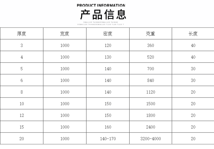 | 規(guī)格1200*20000*10mm | 規(guī)格1200*20000*8mm | 規(guī)格1200*20000*15mm |
