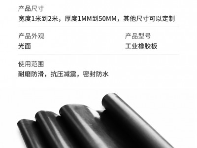 橡膠板可廣泛用于建筑行業(yè)、交通行業(yè)及房屋地面、水利工程、工程機械等方面。橡膠板也可用作密封膠圈、膠墊、門窗封條和鋪設工作臺及地板。